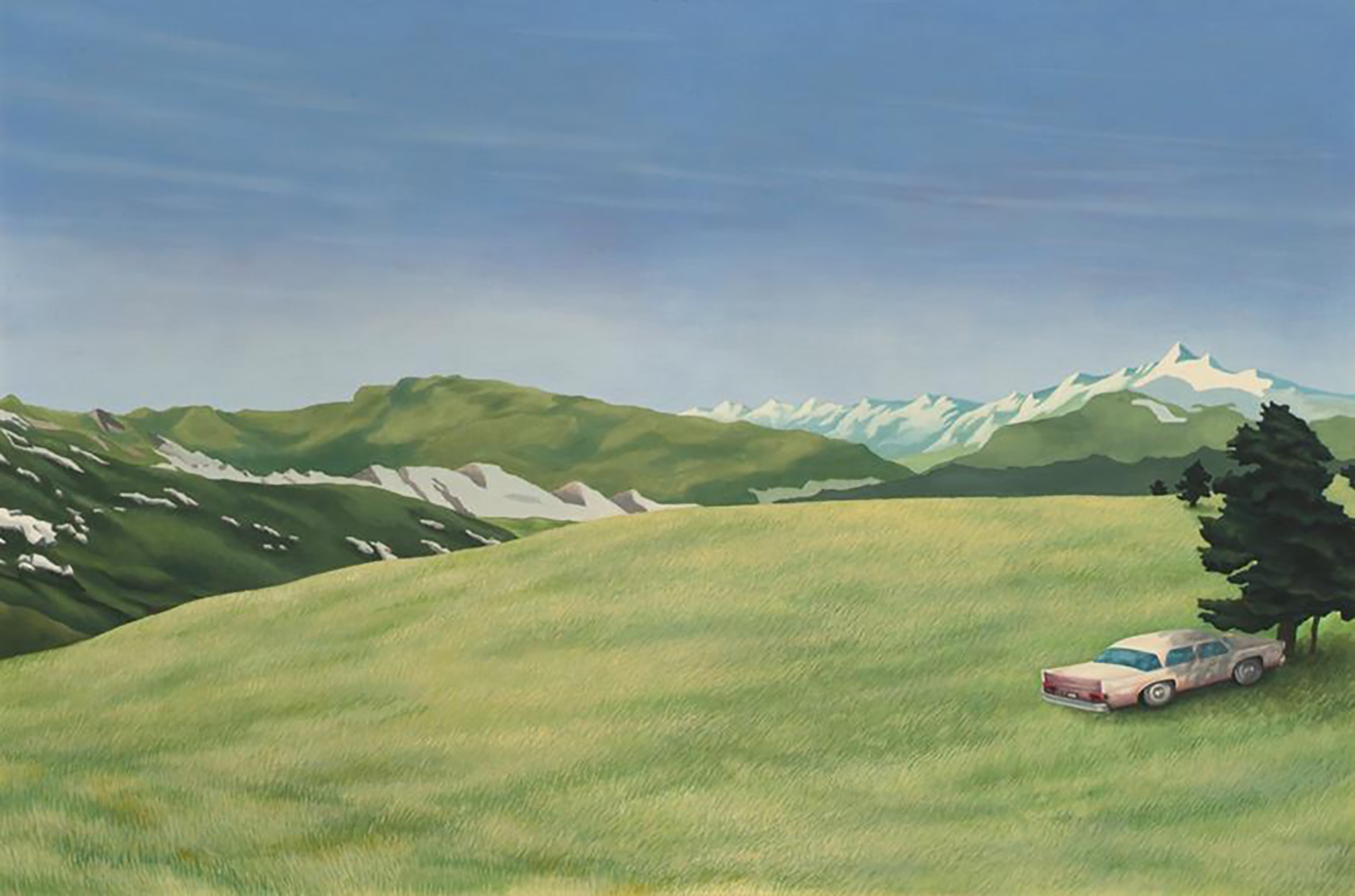 Nach einer Reihe von Figurenbildern und einer Anzahl von Gemälden mit dem Thema Auto und Erotik in den Jahren 1968/70 malte sie 1972/73 eine Reihe von sogenannten Trivialbildern. Sie thematisiert vor allem die alpinen Postkartenlandschaft und malte Schweizer Klischees. Es sind Bilder über Bilder.